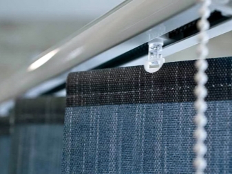 - Corde ou ruban. Une partie du mécanisme est représentée par une bobine «cochlée» sur laquelle le cordon de commande est enroulé, et l'autre partie est une tige à l'intérieur de la boîte. Le mécanisme est activé par un léger mouvement de la main et convient aux tissus en aluminium et aux tissus ne présentant pas un poids mort important;