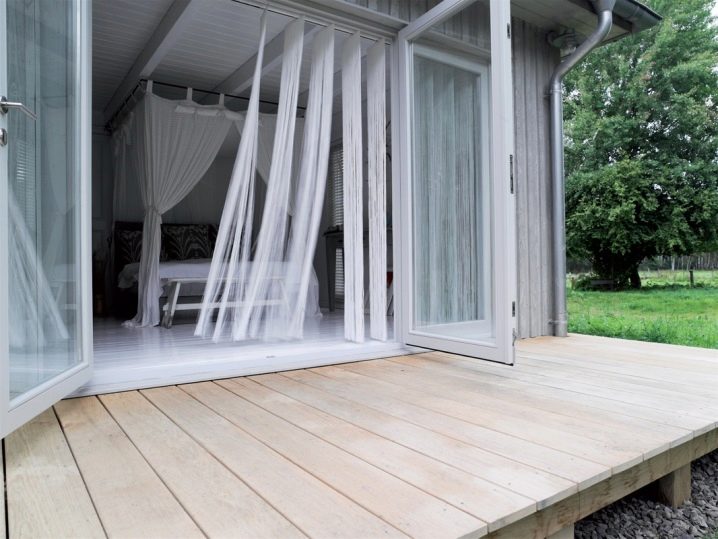 - Accordéon. Un autre type de stores consiste en une division de la pièce en zones ou en planchers de portes pour ceux qui ne sont pas adaptés à la conception statique rigide. La principale différence par rapport aux stores de fenêtre réside dans le fait que les plaques étroites du vantail de la porte, qui se plient comme un accordéon, forment un tout. Il n'y a pas d'espace entre eux et ces portes ne s'ouvrent que d'un côté. Ils sont stables, compacts, ergonomiques et durables, mais ne conviennent pas aux fenêtres.