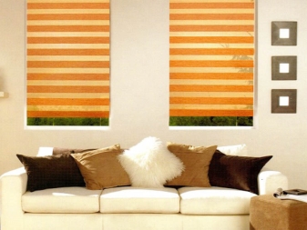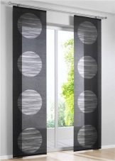 Dans le cas de stores composés d’un ensemble de bandes, l’image ne paraît complète que si elle est complètement fermée. Lorsque les lamelles commencent à changer de position, le dessin devient flou. Mais même sous cette forme, les rideaux semblent originaux et attrayants.