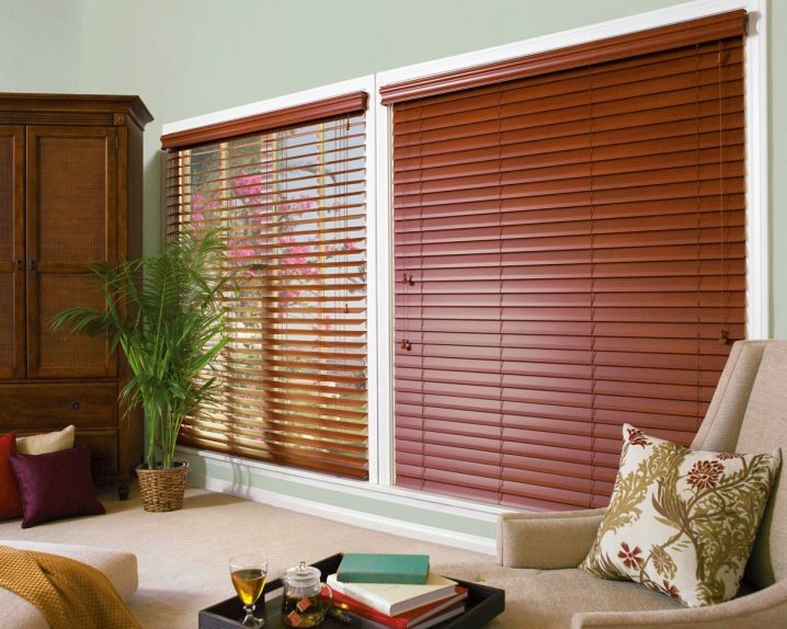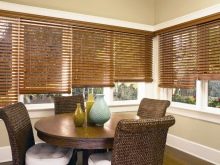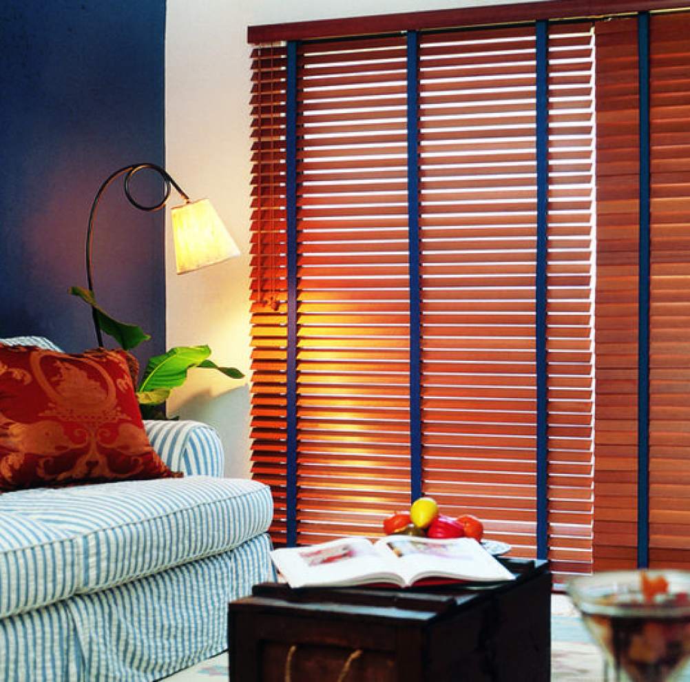 Stores en bois - un type rare et coûteux de rideaux.Il s’agit généralement de tilleul, de pin, de liège et de bambou canadiens.