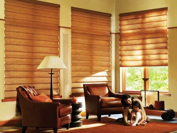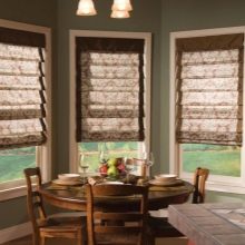 Ce type de rideau est similaire aux stores plissés. Au lieu de plaques, une toile solide est également utilisée ici. La seule différence est que, en se levant, il forme de beaux plis et, sous sa forme redressée, il peut être absolument lisse.Habituellement, ce sont des rideaux en tissu. Parfois, le bambou ou la paille est également utilisé.
