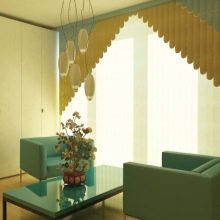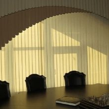 Pour les fenêtres en forme d'arches développé un type spécial de stores. De telles structures sont attachées au mur ou au plafond. La variété peut être quelconque (horizontale, verticale ou laminée). Les matériaux sont également variés.