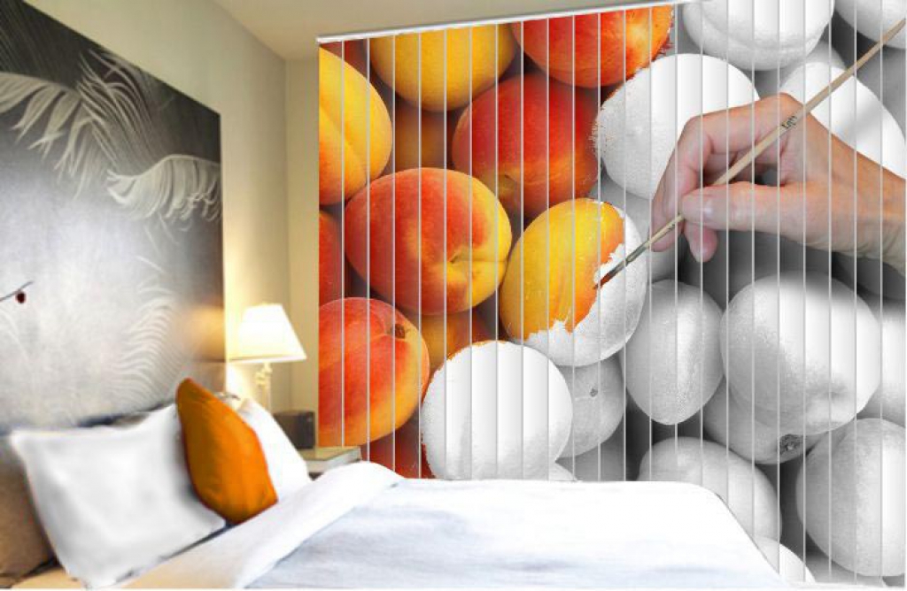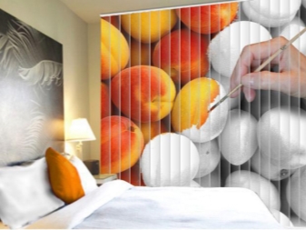 Habituellement, l’image est appliquée sur des stores verticaux et à rouleaux. Cependant, l’impression de photos peut aujourd’hui être décorée et des bandes horizontales de n’importe quel matériau. Les rideaux, qui sont une toile solide, une fois enroulés ne perdent qu'une partie du motif,caché dans un rouleau.