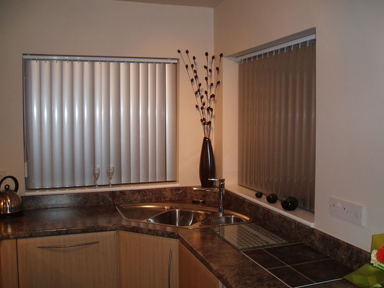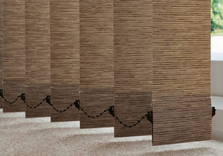Cette vue est caractérisée par une disposition verticale des lamelles. La partie inférieure est unie par une chaîne. De tels stores sont particulièrement élégants. Aussi ils augmentent visuellement la hauteur de la pièce.