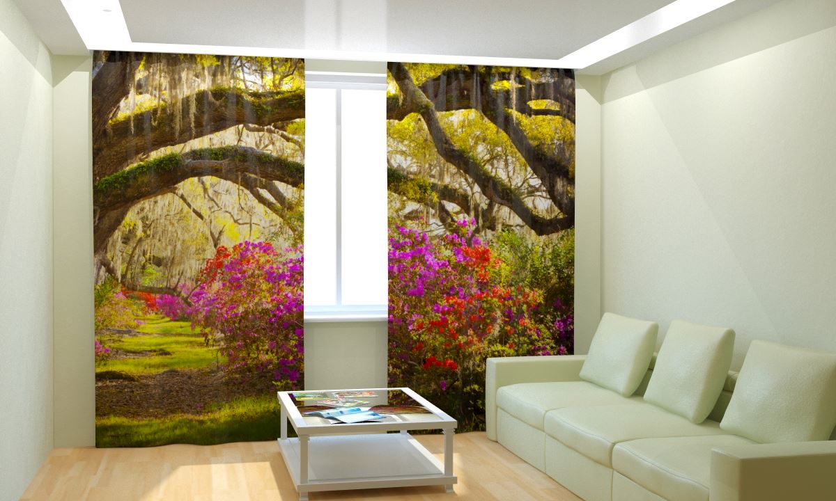 La saturation des peintures dépend de la densité du matériau. Sur les rideaux translucides, la photo semble légèrement floue, mais elle est magnifiquement éclairée par les rayons du soleil et la lumière des lanternes de nuit. Cela donne à l'image un charme particulier et lui confère une brillance magique. Sur les stores denses, l’impression est plus brillante et précise.
